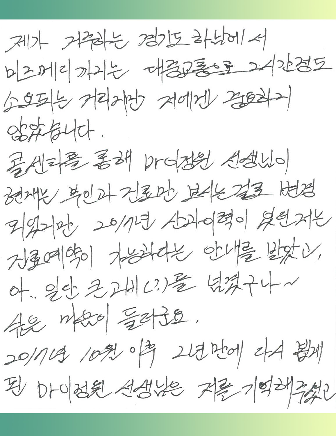 현재 온라인 예약 기준으로는 진료 이력이 없는 것으로 확인됩니다.